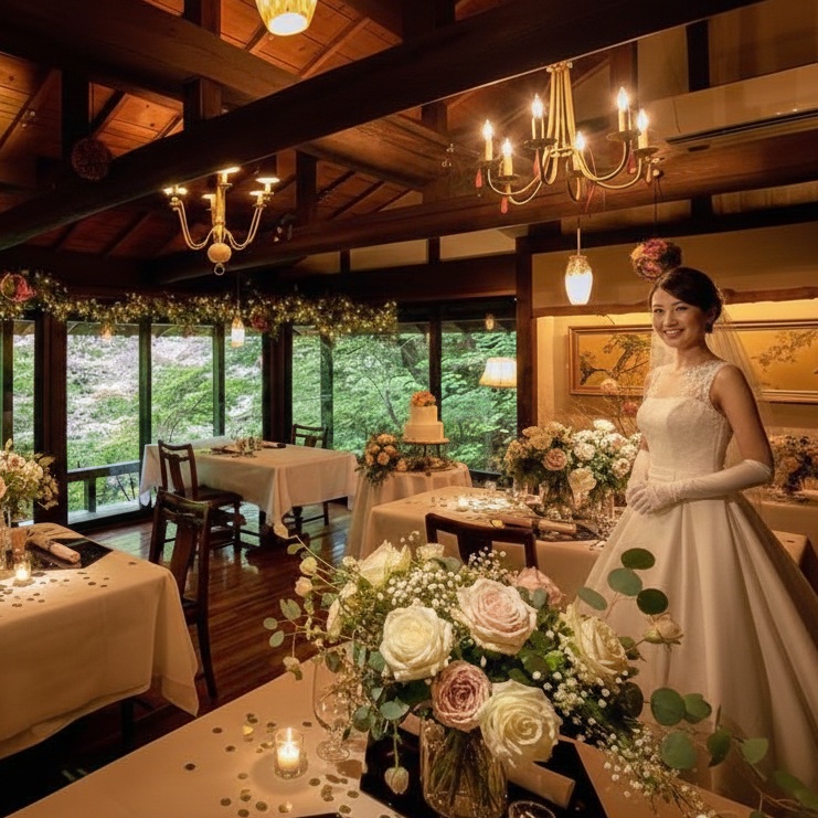 「La Tana nel Bosco」は、木の温もりと豊かな緑に包まれたレストラン。隠れ家のような落ち着いた空間で、大切な方と過ごす穏やかな時間。自然のなかで叶える、心あたたまる結婚式を。